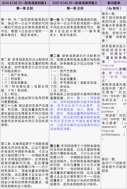 致同研究:《CAS 30—财务报表列报》2014 VS 2025(修订征求意见稿)
