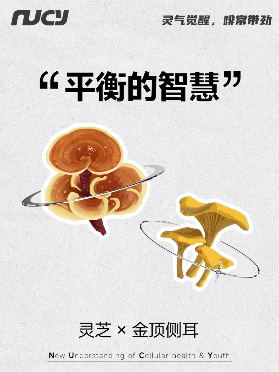但它的内核,多了一份温柔。它特别添加金顶侧耳粉与灵芝粉成分,是传统药食智慧与现代科技的结合,让咖啡因发挥唤醒思维、激发灵感的作用的同时,金顶侧耳与灵芝“双菌协同”则在风味和饮用感受上起到柔和辅助作用,能量的稳定释放,为紧绷的日常提供温和缓冲。